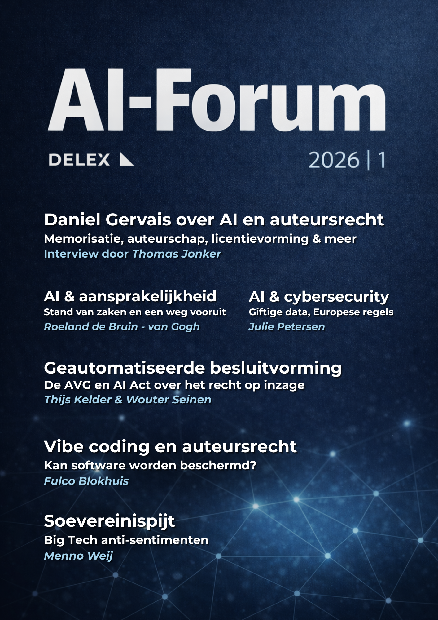 Wat is de stand van zaken op het gebied van AI en auteursrecht? Hoe zit dat met aansprakelijkheid en cybersecurity? Wat is de wisselwerking tussen de AVG en de AI-verordening in de praktijk? Zijn we te afhankelijk geworden van Big Tech?